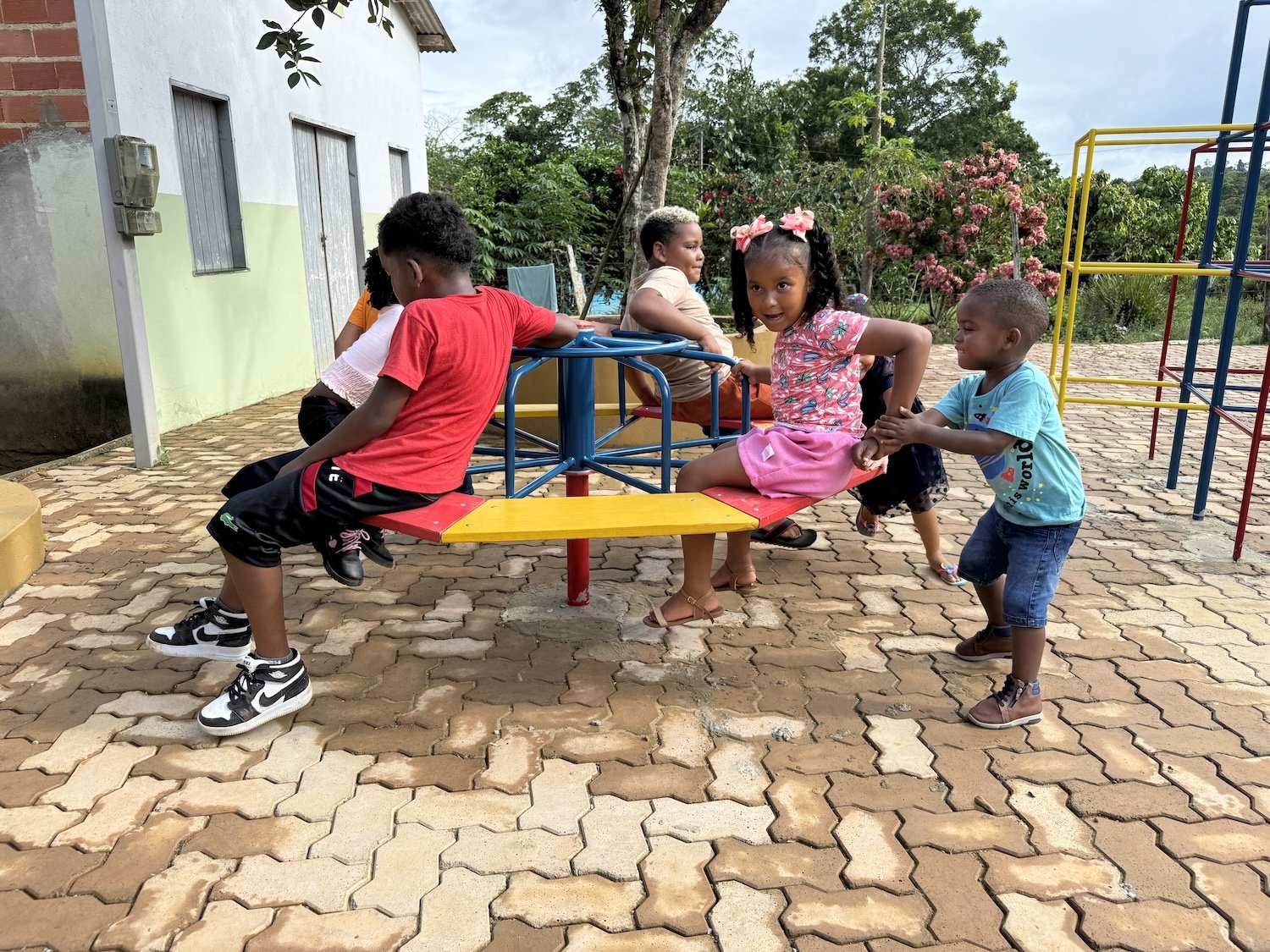 A reforma da escola contemplou a melhora da iluminação, instalação de ar condicionado, piso intertravado no pátio, que antes era tomado pelo barro nos muitos dias de chuva na região. As crianças também ganharam um parquinho novo e até uma área para tomar o lanche foi instalada, sob a sombra de uma imensa árvore em frente à escola.