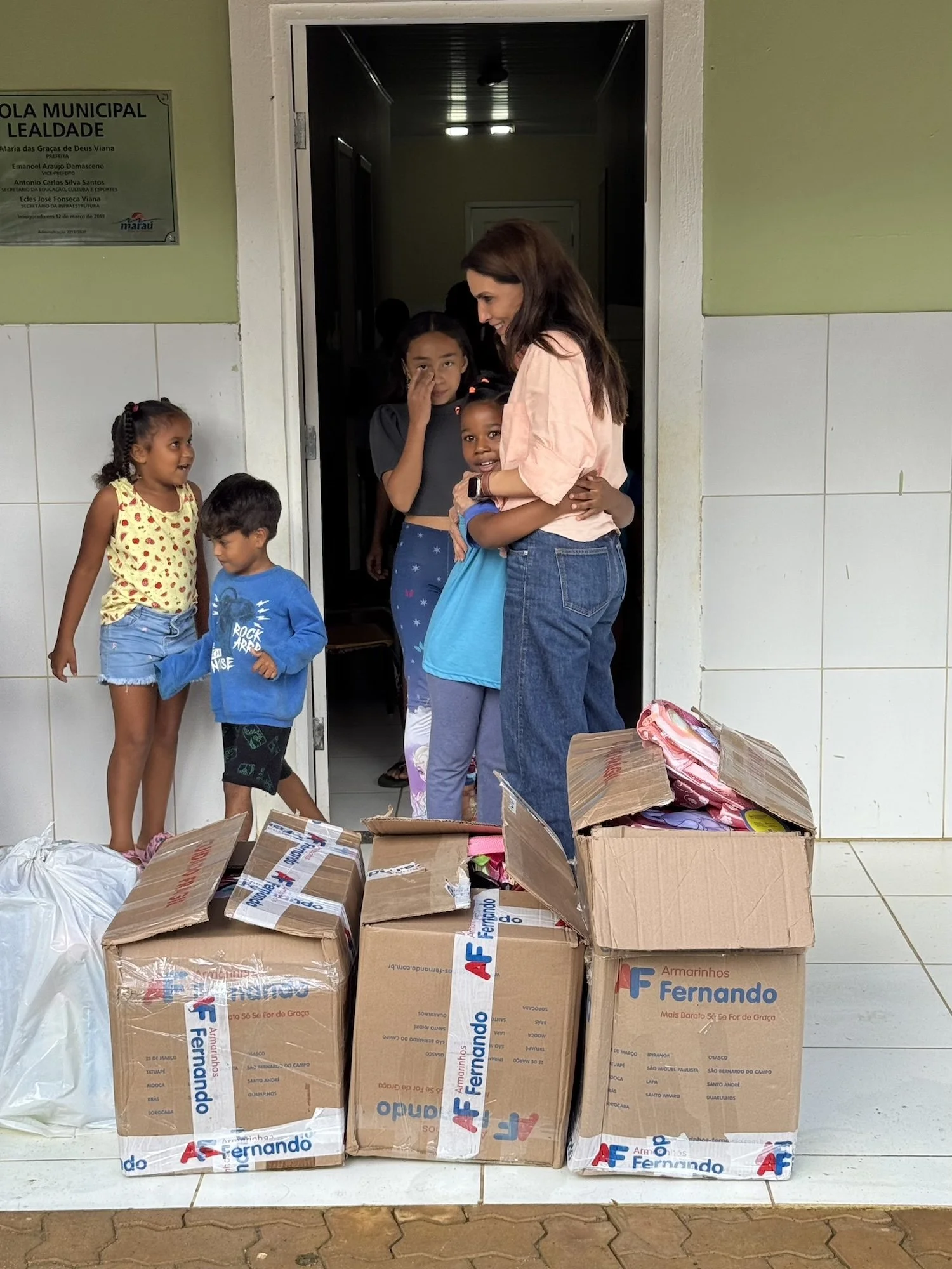Também fizemos a doação de materiais escolares, livros paradidáticos e outros materiais que são utilizados pelas professoras como apoio para as aulas, como jogos, filmes, cartazes e enciclopédias.